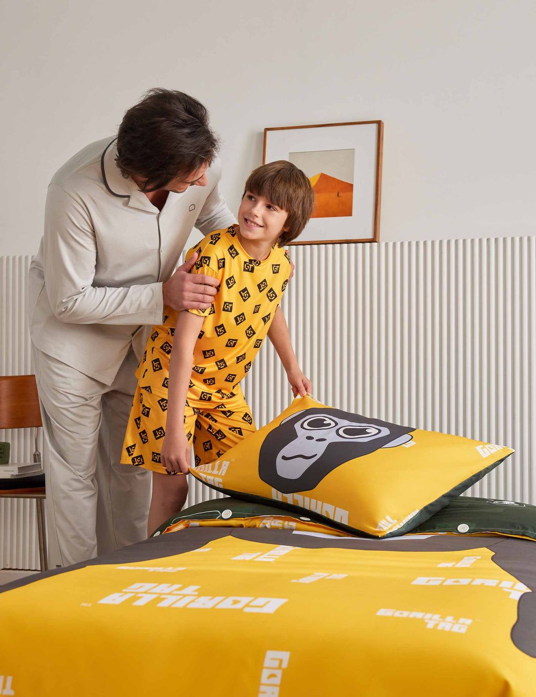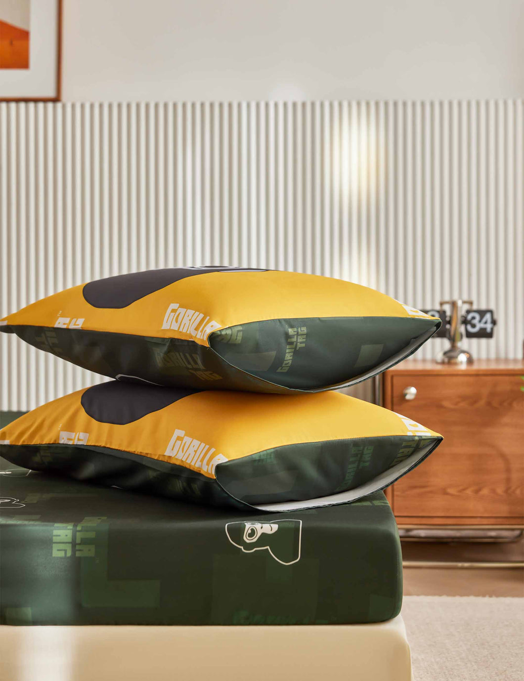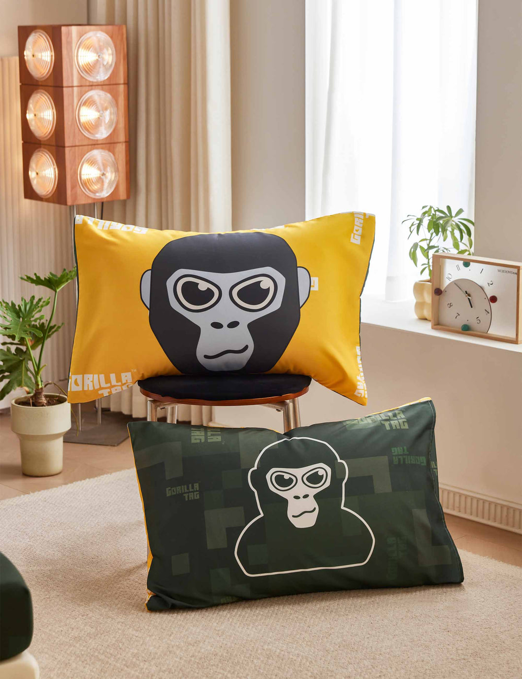 Available as a Twin Bed Set or Full Bed Set. Sleep like a Monke and wake up ready for mischief. This official Gorilla Tag bedding set includes a duvet cover, a fitted sheet, and two pillowcases. The duvet cover and pillowcases are double-sided so you can switch between the yellow and green Monke sides anytime. All pieces are made from soft, durable polyester for Monke-approved comfort.